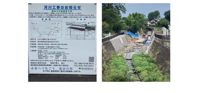 洪水に対する安全性の確保と生態系に配慮した川づくりを進め、水辺に親しめる川の整備として、坂浜地区の護岸整備を実施中。