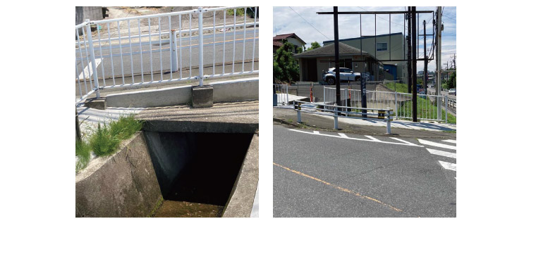 令和4年9月にゼブラゾーンが設置され一定の安全配慮がされる。歩道脇の水路法面については、草刈りではなくコンクリート敷きの工事を実施し、草による見通しの悪化を防ぐことができた。
